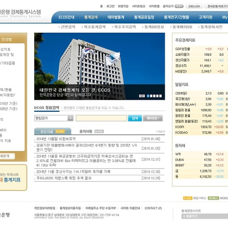 경제 지표 자료 통계가 필요할 땐 한국은행 경제 통계 시스템 이런 저런 포스팅들중에.. 경제나 재테크 등에 대한 포스팅을 종종 하다보니.. 자세하면서도 정확한 통계 자료가 필요한 경우들이 있습니다. 그럴 때 인터넷으로 이리 저리 뒤져도 쉽게 나오지 않는 경우들이 허다하지요.. 그래서.. 포스팅 시간의 절반은 통계와 자료 수집이라는 생각이 절로 들곤 합니다. 이런 의미에서.. 유용한 사이트들은 즐겨찾기를 통해 저장해 두고 이용을 하는데요.. 이번에는 경제 지표에 대한 통계가 필요할 쓰는 사이트입니다. 한국은행 경제 통계 시스템 한국은행 경제통계시스템의 메인 화면입니다. 제가 주료 쓰는 메뉴는 통계 연구 / 간행물 - 주요 통계 간행물입니다. 이 외에도 통계 검색을 종종 쓰기도 하구요. 100대 통계 지표도..